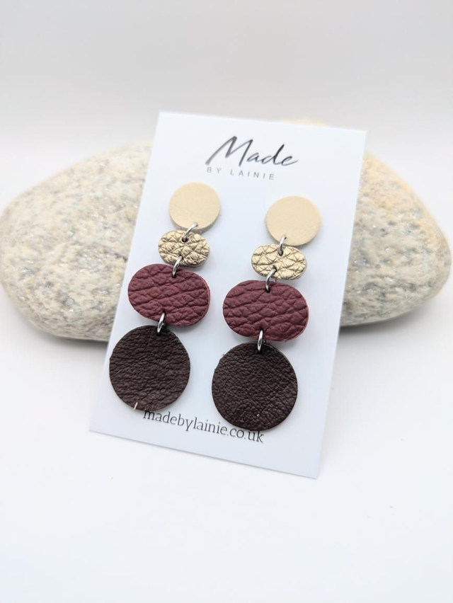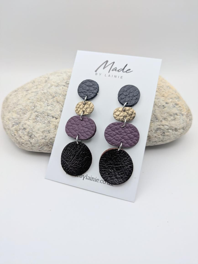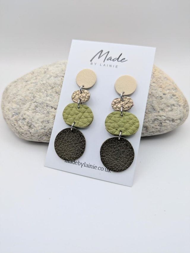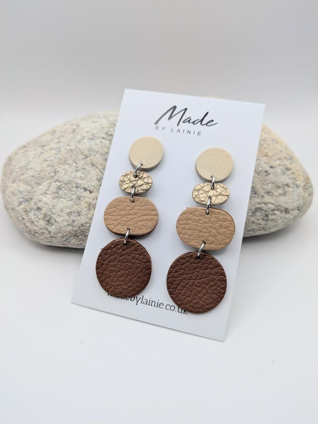 Inspired by the beautiful Carmarthenshire coastline and its natural earthy colours. These leather earrings dangle gracefully and the colours evoke a sense of groundedness and tranquility. They're versatile too, pairing effortlessly with both casual denim and flowy dresses, making them the ideal accessory for a wide range of styles.