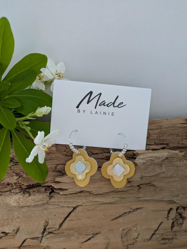 These earrings offer a stylish and understated way to accessorise your casual daytime outfits. Their lightweight nature ensures all day comfort, and the layered flower motif adds a touch of fun. Suspended from sleek stainless steel hoops and accented with silver-lined glass seed beads for a touch of sparkle.. A simple design with enduring appeal.