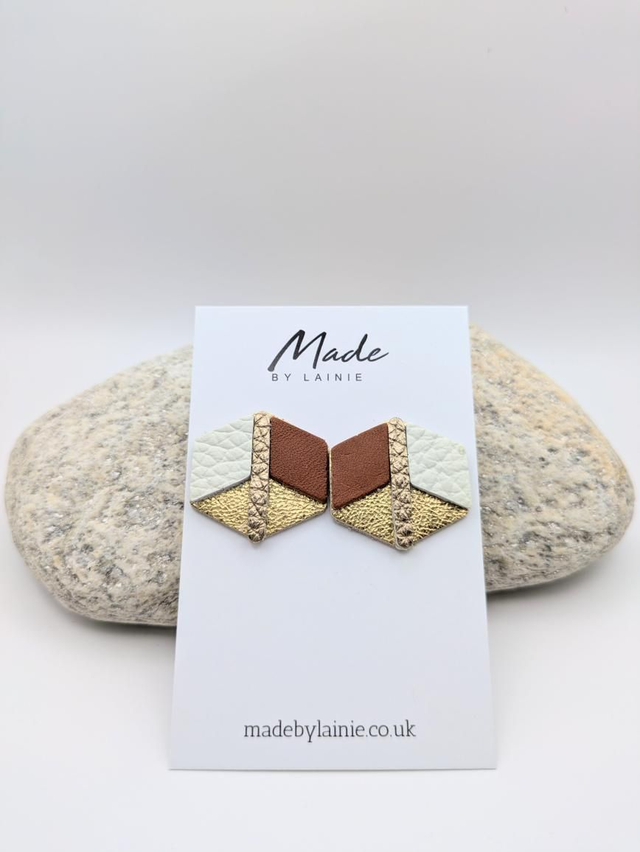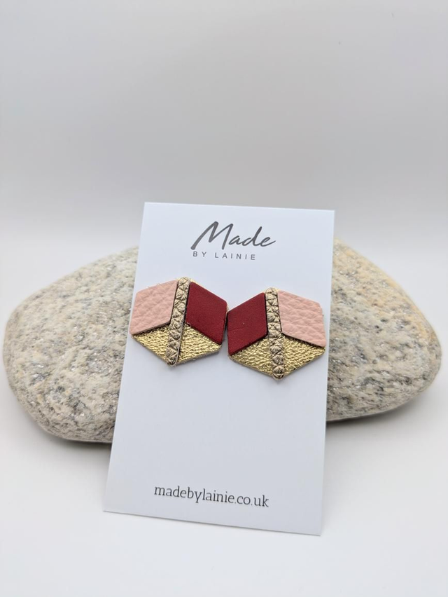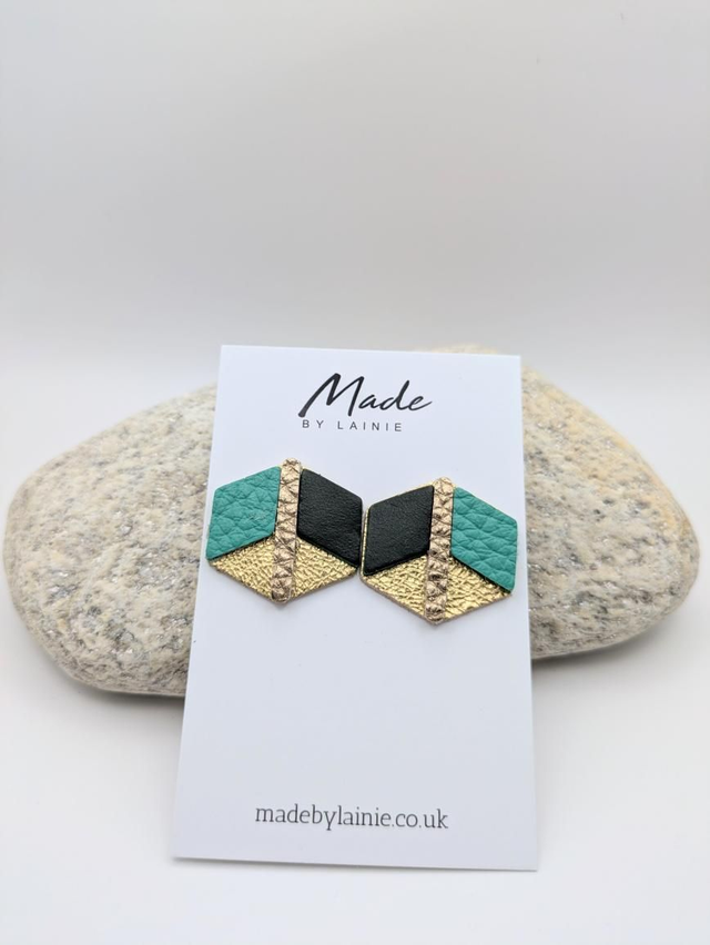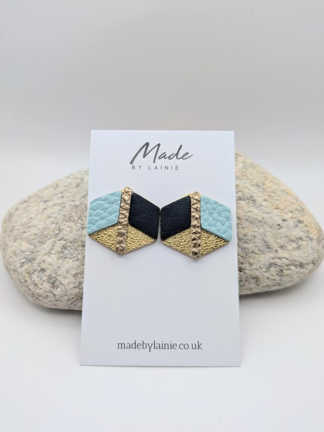 The mesmerising 3D illusion is what sets these leather earrings apart. Subtle variations in colour and texture play tricks on the eye, making the flat leather surface appear to have depth. This effect offers a dynamic and intriguing visual that's sure to catch the light and draw attention. The perfect accessory for adding a touch of contemorary artistry to any outfit.
