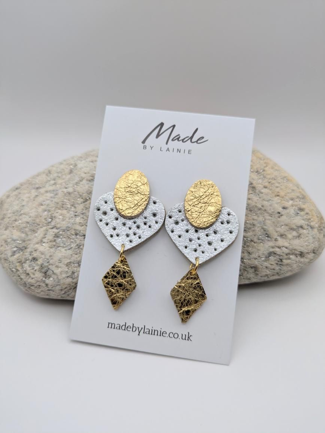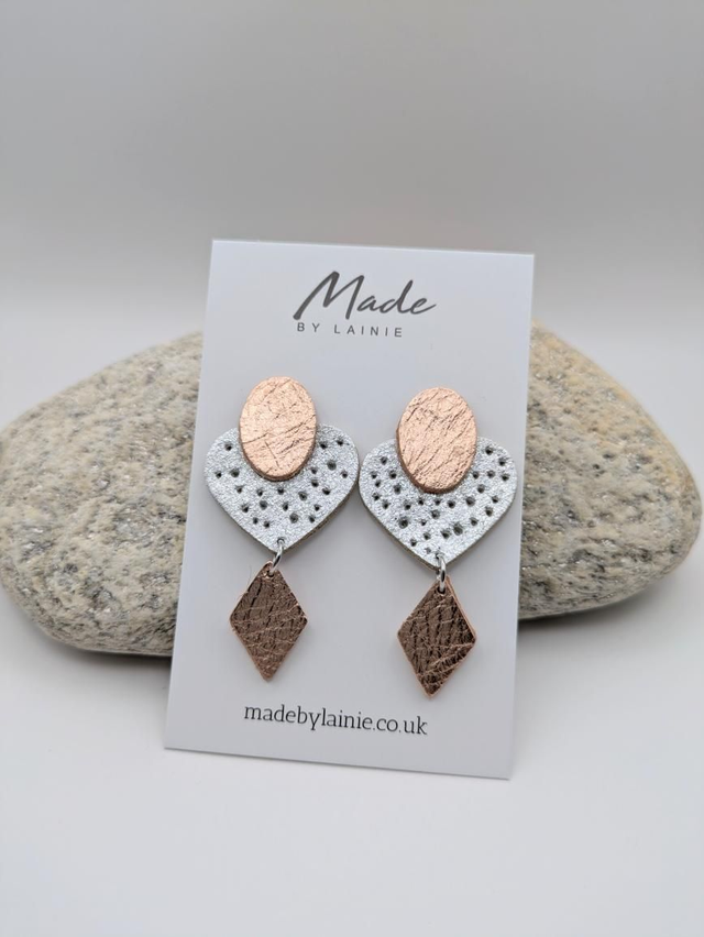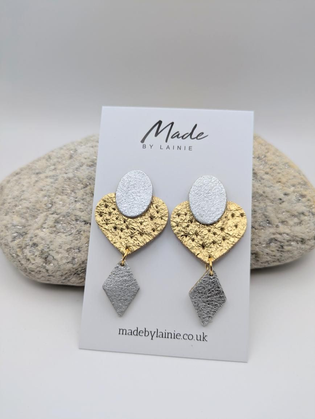 Bold yet refined, the Modern Muse stud earrings blend contemporary design with artisanal craftsmanship. Each pair is handmade from metallic leather, combining geometric shapes and mixed-metal tones for a statement that’s effortlessly chic. Lightweight and comfortable, these stud earrings are perfect for adding a modern artistic touch to any look—day or night.