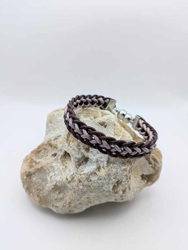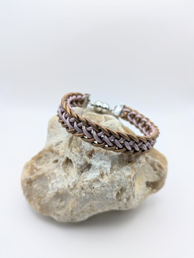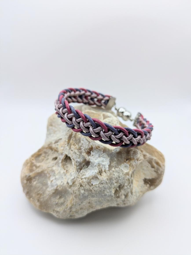 Hand braided using the traditional Japanese Kumihimo technique, this bracelet features supple genuine leather cords, creating a strong yet flexible weave that's both eye-catching and comfortable to wear. The sleek stainless steel magnetic clasp ensures a secure and easy fit, offering a modern finish to this timeless design.
