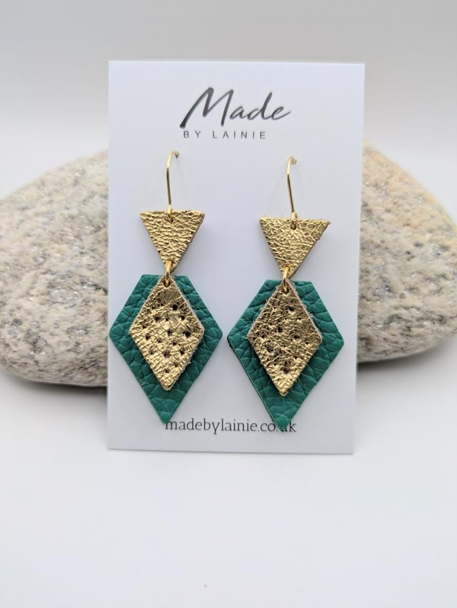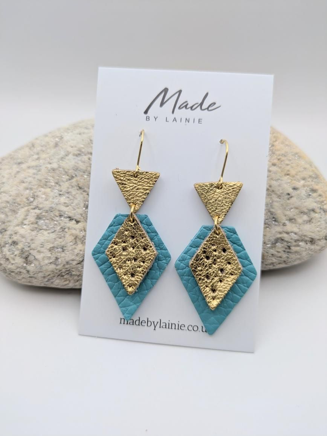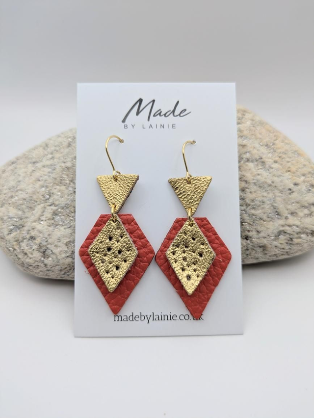 Bold and luxurious, these richly textured leather earrings feature a striking, layered diamond silhouette with an artistic edge. The randomly scattered perforations create a unique surface pattern, giving these earrings a contemporary feel. Beautifully lightweight and comfortable to wear, these earrings will elevate and add interest to any outfit.